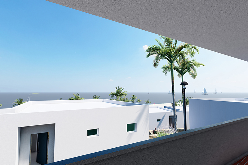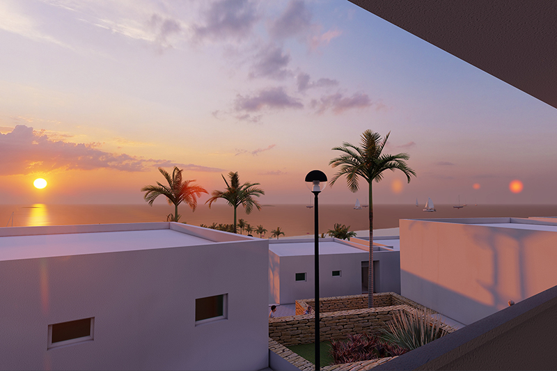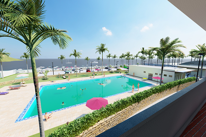 La résidence propose aux clients des appartements avec une architecture balnéaire simple et moderne , des grandes baies vitrées permettent de profiter des vues panoramiques sur l'océan .