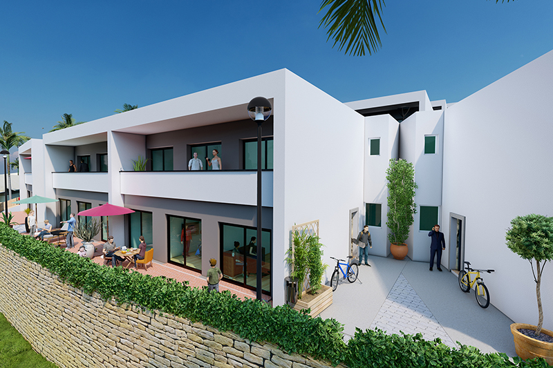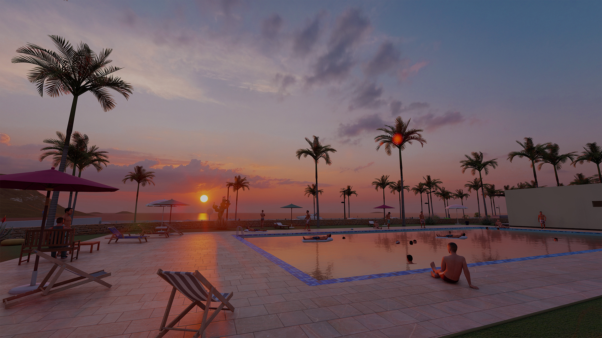 La résidence propose aux clients des appartements avec une architecture balnéaire simple et moderne , des grandes baies vitrées permettent de profiter des vues panoramiques sur l'océan .